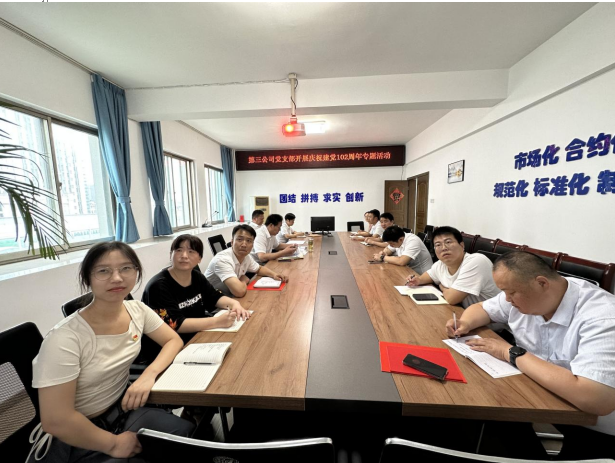 在“七一”即將到來之際,第三公司黨支部于6月29日上午在會議室組織開展慶祝建黨102周年主題黨日活動暨主題教育專題黨課,第三公司全體黨員、入黨積極分子共20余人參加活動。