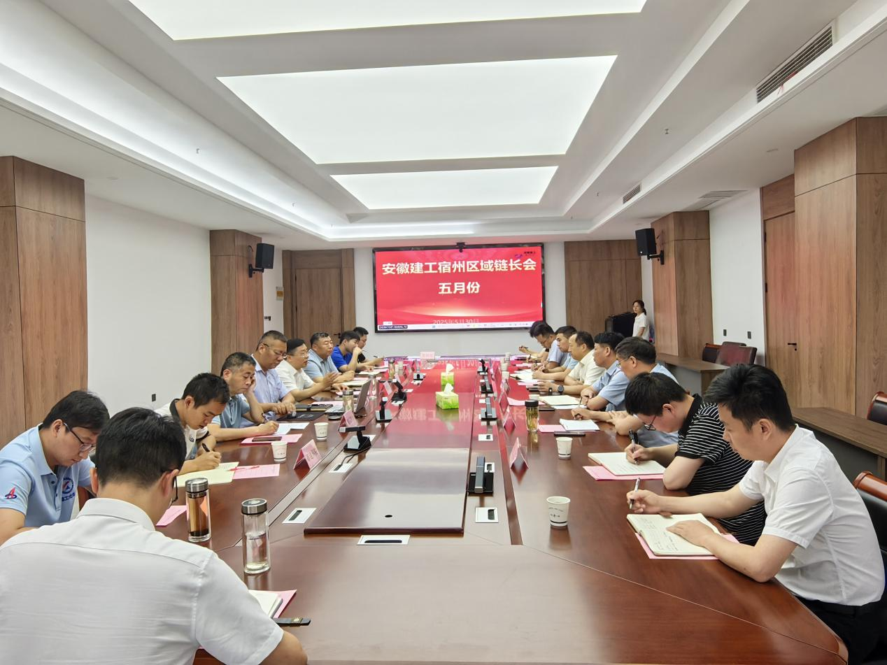 5月30日上午,安徽建工集團5月份宿州區域鏈長會議在建工宿州投發公司四樓會議室順利召開。建工宿州投發公司黨委副書記、總經理周國林,黨委委員、副總經理謝慶龍以及在宿各單位主要負責人參加會議,建工宿州投發公司市場開發和投資部部長盧朋主持會議。