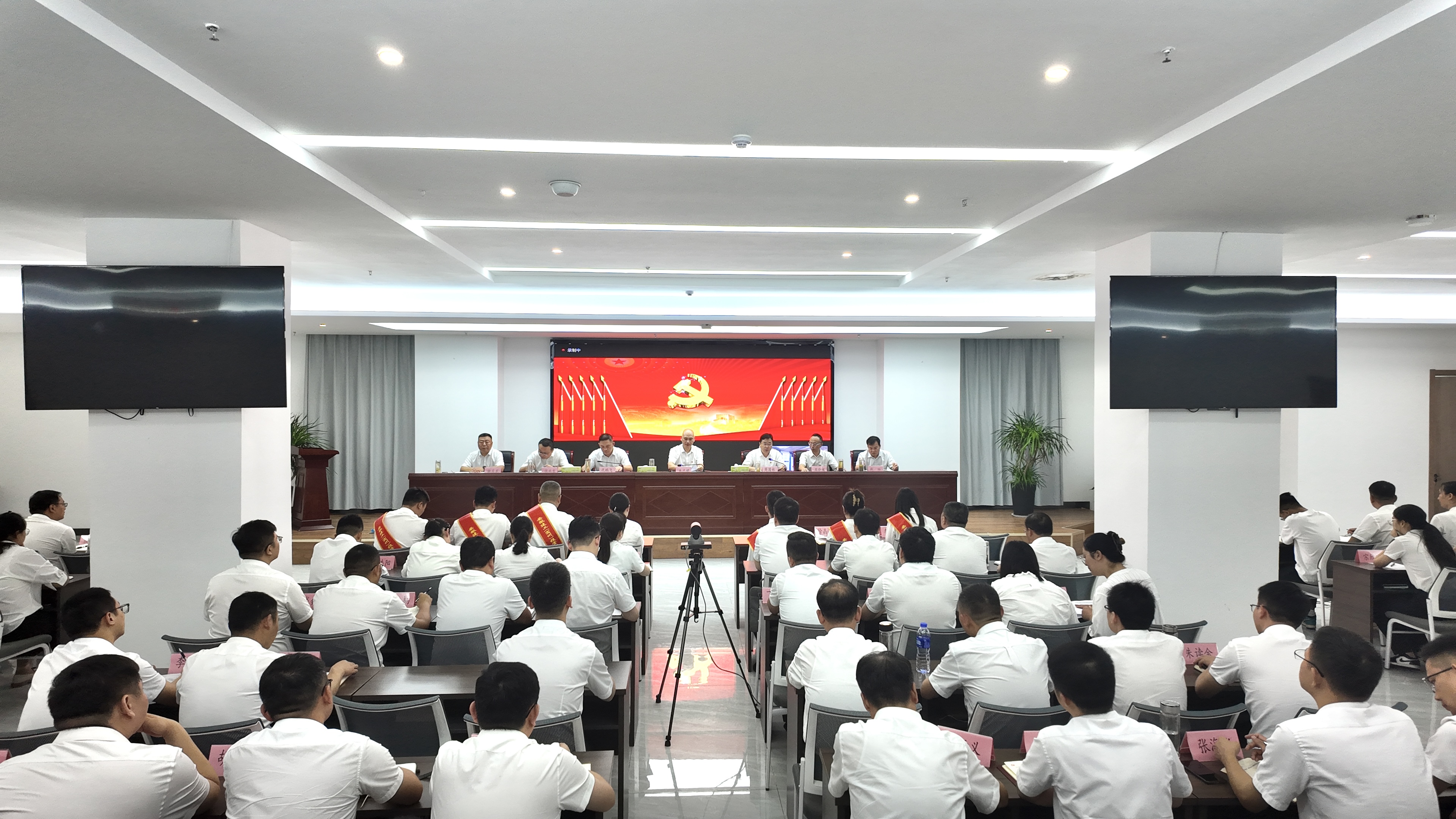 會議以現場加視頻的方式召開,公司領導班子成員,機關全體人員,所屬單位領導班子成員,全體黨員,部分預備黨員,在建項目經理等220余人參加會議。