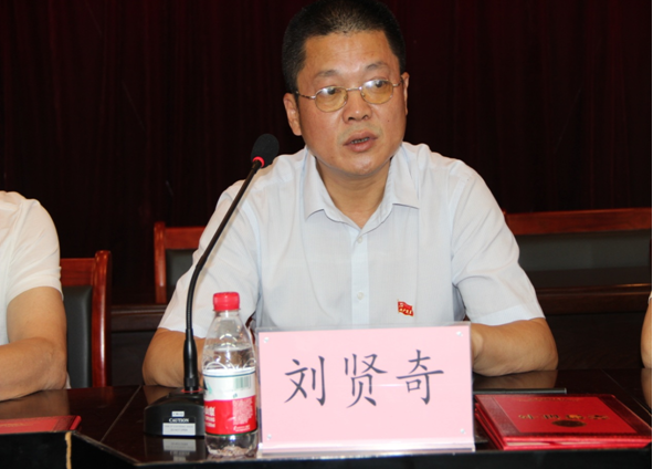 圖為黨委書記劉賢奇上黨課