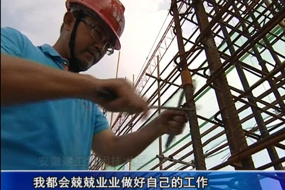 在商務(wù)樓十四層梁柱鋼筋綁扎作業(yè)施工現(xiàn)場(chǎng),項(xiàng)目部鋼筋班組工人張學(xué)亮接受了電視臺(tái)的采訪(fǎng),他向記者重點(diǎn)介紹了項(xiàng)目工程目前的施工進(jìn)展情況、工作進(jìn)度節(jié)點(diǎn)安排、夏季防暑降溫工作安排和平時(shí)在工作中遇到的施工工藝上的重難點(diǎn)問(wèn)題所做出的積極努力。