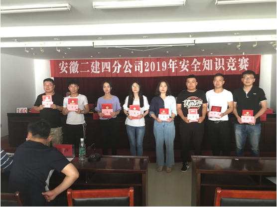 競賽分為個人必答、小組必答、搶答和風險選擇四個環節,來自湖北、河南、江西、合肥、臨泉5個項目部和分公司機關共八支代表隊展開了激烈的角逐。參賽選手事先做了充分準備,競賽過程緊張激烈,最后分公司機關第一代表隊王茹、吳茜搭檔脫穎而出,在本次比賽中一舉奪魁。
