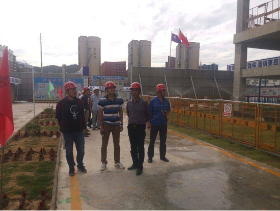 評審組首先聽取了創(chuàng)建工作的匯報,安慶市住建局領(lǐng)導(dǎo)在分公司副經(jīng)理崔俊的陪同下參觀了現(xiàn)場的安全文明標準化設(shè)施,詳細了解了作為創(chuàng)建亮點的外腳手架噴淋體系和圍擋噴淋體系的效果和造價,對現(xiàn)場采用的效果好、可周轉(zhuǎn)的定型化防護予以了高度評價。