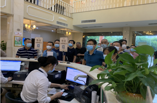 退休老職工有序排隊進行抽血檢查