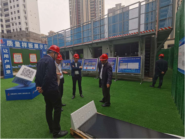 蚌埠山香安置房項目自開工初期,就確定了爭創集團、市級、省級安全文明標準化示范工地目標。專家評審組成員對項目現場安全文明施工、安全防護、施工用電、大型設備安裝維護、高處作業、揚塵防治以及裝配式預制構件吊裝的安全保證措施等方面進行了全面檢查驗收。隨后,評審專家組在會議室認真聽取了項目負責人就目標管理、施工現場安全文明管理、安全文明工作體系建設、信息化建設等方面的匯報。專家組對項目安全文明標準化建設成果給予了充分肯定,對驗收過程中存在的問題和不足進行了精心指導,希望項目部積極在預制裝配式建造領域不斷探索,深入學習總結。