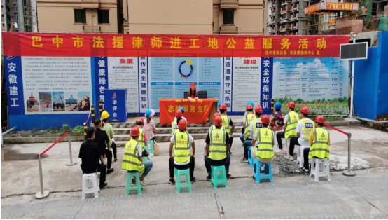 8月7日下午,四川巴中市司法局、市法律援助中心組成的公共法律服務志愿隊,在安徽二建一分公司半山逸城二期項目開展法制宣傳教育活動。