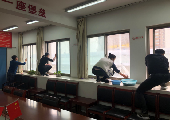 根據清掃范圍分布,參加義務勞動人員分成3個小組,有的認真擦拭窗戶,有的來回搬運垃圾,有的舞著拖把拖地,所有人員積極主動,相互配合,不怕臟、不怕累、不怕冷。雖然天氣寒冷,但大家依然熱情高漲,將整個清掃范圍內打掃的一塵不染。