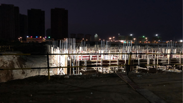 阜陽文一·云棲天境項目部于2019年8月底組建。項目團隊進場時,土方開挖剛剛啟動,所需要的施工圖紙--沒有,施工許可文件--沒有,臨時設施用地--不提供!如此等等。面對一個又一個的難題,項目管理人員沒有毫言壯語,只有樸實而堅毅的信念--只為困難找辦法,不為困難找理由,火力全開,全速推進項目建設!