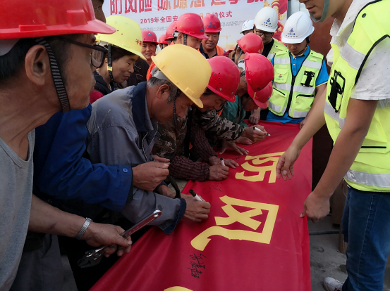 6月1日上午,阜陽吾悅廣場項目舉行“安全生產月”啟動儀式暨安全宣誓簽名活動,項目全體成員及一線工人一百余人在講評臺前莊嚴宣誓,響亮而渾厚的聲音,意義非凡的誓詞讓廣大員工心靈得到了震撼,同時明白,只有堅決守住安全生產紅線,才能使家庭幸福美滿。