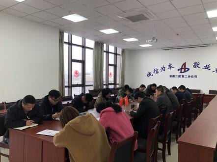 支部書記黃業(yè)云帶領(lǐng)大家學(xué)習(xí)了《關(guān)于印發(fā)<安徽二建公司堅決打好防范化解重大風(fēng)險攻堅戰(zhàn)工作方案>的通知》文件精神,并對公司3月8日召開的堅決打好防范化解重大風(fēng)險攻堅戰(zhàn)動員部署會議精神進(jìn)行了宣貫。會上根據(jù)《安徽二建第二分公司堅決打好防范化解風(fēng)險攻堅戰(zhàn)工作方案》的工作部署,要求各科室及項目部思想上高度重視,防范化解重大風(fēng)險工作要抓細(xì)抓實,結(jié)合工作實際,梳理重大風(fēng)險源,明確到人,責(zé)任到人,項目部按照分公司文件時間節(jié)點要求,形成書面材料上報至分公司對口科室。