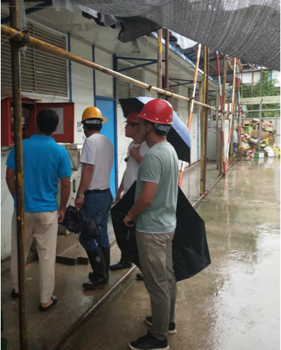 一是停止一切施工作業,立即對施工現場的作業工人進行全部撤離,并將活動板房內的人員全部疏散,同時和勞務班組核實撤離情況。二是組織項目部管理人員對施工現場的機械設備、臨時用電、安全防護棚、排水系統等和生活區活動板房進行全面隱患排查,立刻采取有效的防范措施,確保工地安全。三是密切監視臺風動態,安排值班人員處置突發情況。