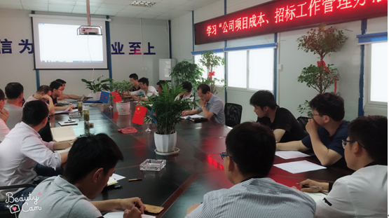 會上,核算科趙明以PPT形式帶領大家學習了相關制度內容,詳細解讀了集團公司招標管理辦法中對招標流程、招標層級劃分以及公司成本管理辦法中對項目成本管控工作的相關規定等內容。