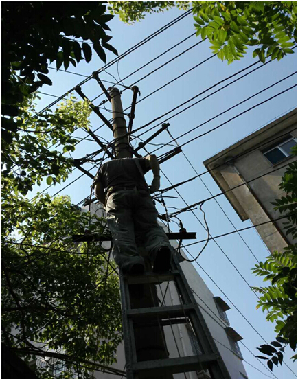 7月23日,原二公司生活基地由于供電線路嚴重老化,發生線路著火斷電事故,后勤綜合服務部接到險情報告后,立即組織搶修隊伍奔赴現場,維修人員不懼高溫酷暑,頂著烈日,經過幾個小時的高空作業,及時恢復了供電。