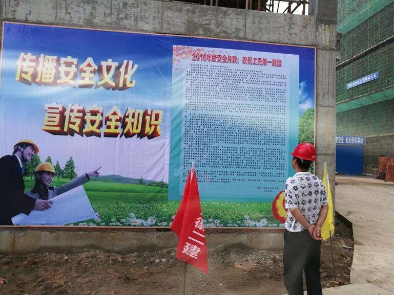 在本次“安全生產(chǎn)月”活動期間,三分公司安建·龍溪山莊項目部將根據(jù)集團及公司文件要求,緊密圍繞“強化安全發(fā)展觀念、提升全民安全素質(zhì)”的活動主題,加大安全宣傳力度,組織廣大員工、一線作業(yè)人員學(xué)習(xí)相關(guān)法律法規(guī),開展應(yīng)急演練、致農(nóng)民工兄弟一封信、播放安全警示紀(jì)錄片等一系列活動,創(chuàng)新安全警示教育,推進(jìn)安全文化建設(shè),精心挑選了一批安全漫畫張貼在施工現(xiàn)場顯要位置,通過各種形式向全體施工人員傳遞“安全生產(chǎn)”的理念,增添了安全月的活動氣氛,扮“靚”了施工現(xiàn)場。同時充分發(fā)揮現(xiàn)場質(zhì)量員、安全員作用,將活動有組織的開展好,將現(xiàn)場的安全質(zhì)量、文明施工控制好,實現(xiàn)項目部施工生產(chǎn)安全平穩(wěn)推進(jìn)。