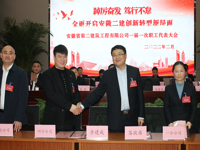 2月28日,安徽省第二建筑工程有限公司一屆一次職工代表大會在公司新會議室隆重召開。會議堅持以習(xí)近平新時代中國特色社會主義思想為指導(dǎo),全面貫徹黨的十九大和十九屆歷次全會精神,貫徹安徽省第十一次黨代會精神和安徽建工控股二屆二次職代會暨2022年工作會議精神,回顧總結(jié)2021年工作,分析研判當(dāng)前形勢,部署2022年目標(biāo)任務(wù),號召全體職工忠誠擁護(hù)“兩個確立”,堅決做到“兩個維護(hù)”,在省委、省國資委、建工控股黨委的堅強領(lǐng)導(dǎo)下,踔厲奮發(fā)、篤行不怠,埋頭苦干、勇毅前行,奮力譜寫安徽二建高質(zhì)量發(fā)展新篇章,以實際行動慶祝集團建企70周年,以優(yōu)異成績迎接黨的二十大勝利召開。