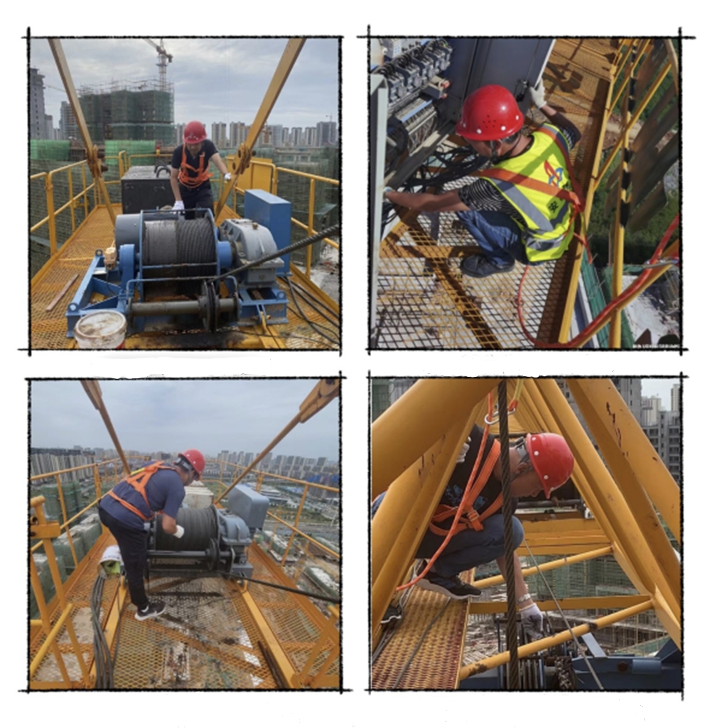 檢查組一行按照“全覆蓋、零容忍、重實效”的原則,周末無休,輾轉15座城市,對在建35個項目的170余臺塔式起重機、130余臺施工升降機、物料提升機及高處作業吊籃等建筑機械及項目高處作業防護等方面進行徹底排查整治,重點檢查建筑機械實體安全和使用管理情況,勞保用品配備、使用情況,臨邊、洞口、通道口防護情況,攀登、懸空作業安全措施,各類操作平臺安裝使用情況等,并對施工現場腳手架、模板支架、施工用電等方面進行了檢查。